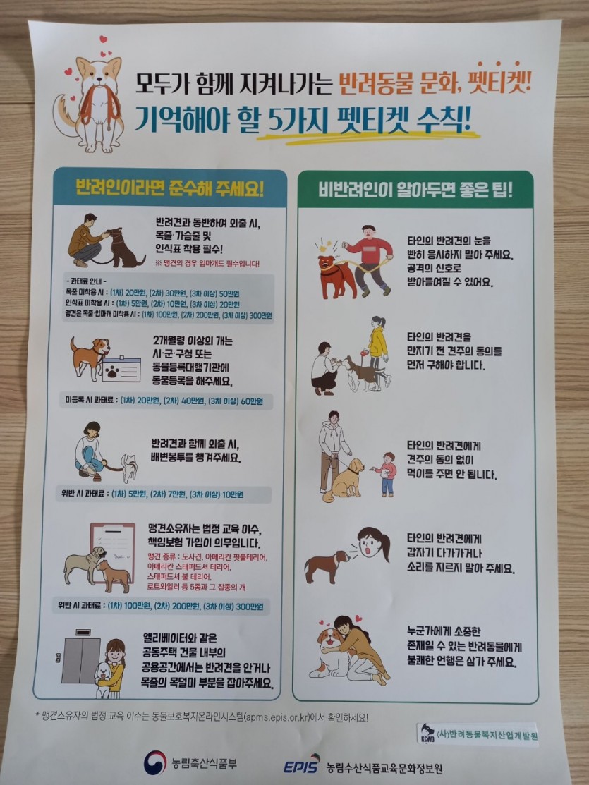 본 협회에서는 펫티켓에 대한농림축산식품부에서 제작한 홍보 포스터를